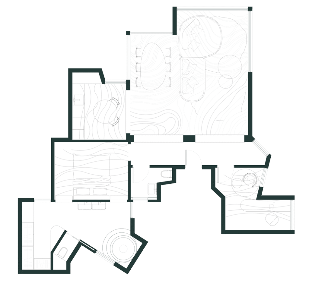 Hall / Salón / Comedor / Cocina / Aseo / Dormitorio principal / Baño principal / Vestidor / Despacho